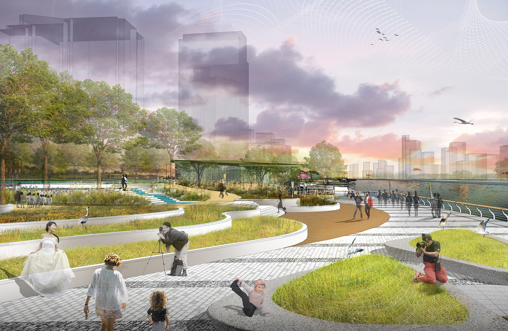 Shanghai north bund riverside mountain block landscape, China by OFFICE